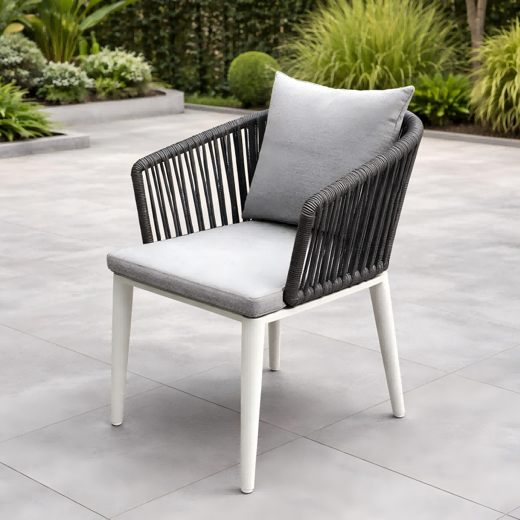 Yemək kresloları rahat dəstək təmin etməklə yanaşı, müasir və zərif görünüş yaradan, iplə toxunmuş arxa dayağa malikdir. Çərçivə pas və açıq hava şəraitinə əla müqavimət göstərən tozla örtülmüş alüminiumdan hazırlanmışdır.
